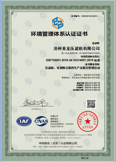 環(huán)境管理體系認(rèn)證證書