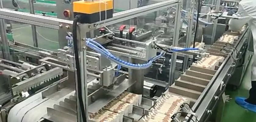 全自動裝盒機是一款全自動開盒、裝盒、封盒為一體的自動化包裝設(shè)備,該機可采用插舌、噴膠、扣底扣、自扣底等方式對紙盒進行成型,同時自動理料并將物料裝進紙盒,再對紙盒進行封口,多用于食品、藥品、電子元器件等領(lǐng)域。