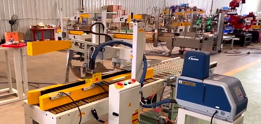 熱熔膠折蓋封箱機(jī)是一款既高效又環(huán)保的自動化包裝設(shè)備,該機(jī)可以選擇只熱熔膠封箱,也可選擇熱熔膠與膠帶同時封箱,效果更佳。艾訊熱熔膠封箱機(jī)配置美國諾信膠機(jī),性能穩(wěn)定,噴膠效果好,售后有保障。廣泛用于食品、藥品、化工、電商等領(lǐng)域。