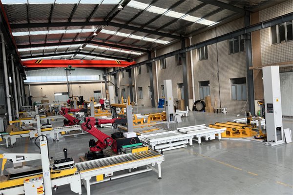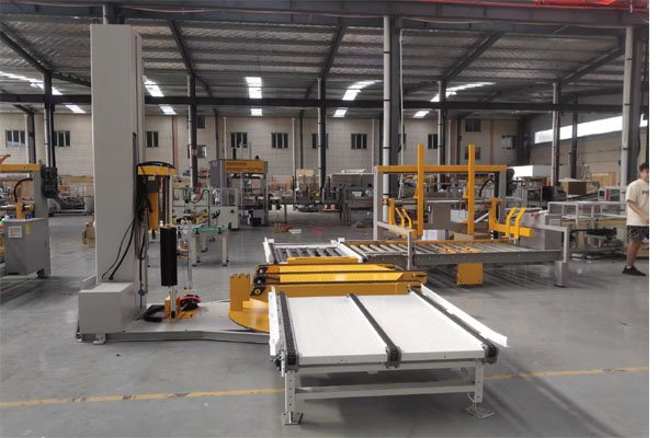 該線體涵蓋紙箱的開封箱機(jī)、自動(dòng)裝箱機(jī)、自動(dòng)供棧機(jī)、碼垛機(jī)器人、在線纏繞機(jī)、輸送機(jī)等6大單元,三線并行,實(shí)現(xiàn)了全無(wú)人化操作,是完整的全自動(dòng)化包裝流程典范。