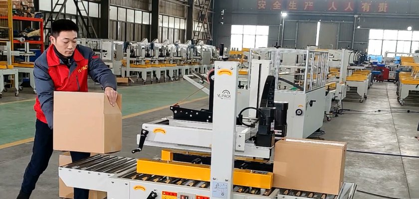 ?此封箱機(jī)可封較窄、較高紙箱